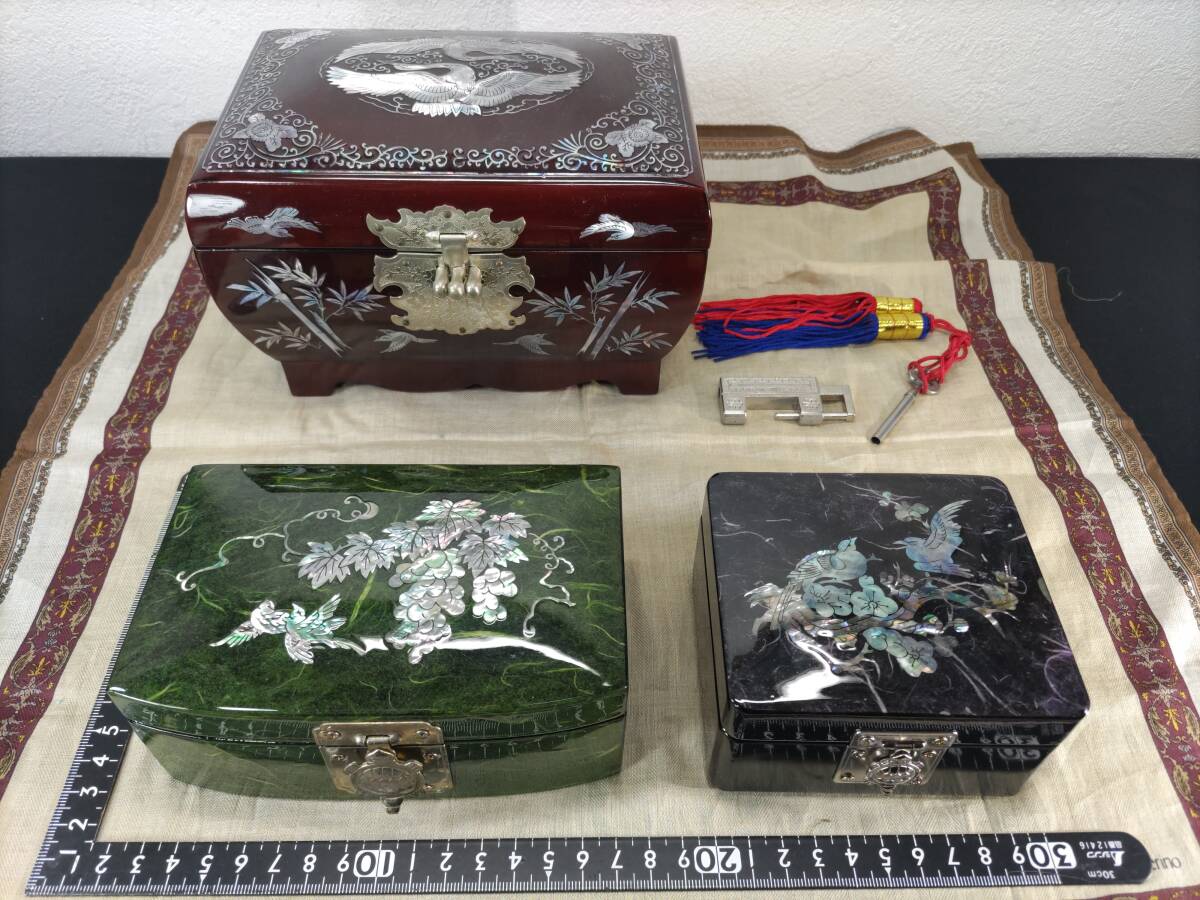 - ■送料無料!■まとめて■螺鈿細工・宝石箱・H12×W18.5×D12.5cm■ジュエリーBOX■韓国伝統工芸品■3点セット!