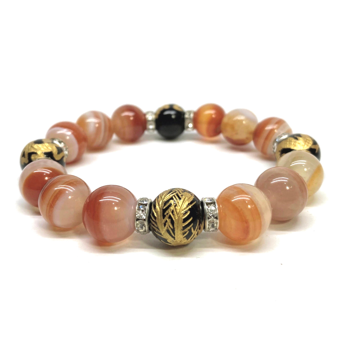 - 四神獣金彫オニキス×カーネリアン・サードニクス 12mm パワーストーン ブレスレット 天然石 青龍 白虎 玄武 朱雀 運気上昇 四神相応 S