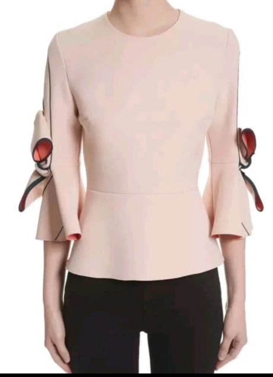 > ロクサンダ roksanda リボン 七分袖 ベージュピンク トップス 8 ベルスリーブ トップス カジュアル パーティー