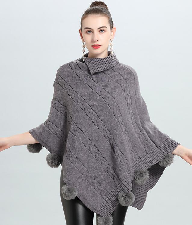- M1021 ポンチョレディース● 着心地抜群 20代30代40代 ● 羽織 ニット素材 ケーブル編み グレー
