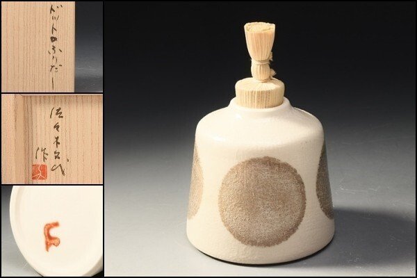 - U07769 東京芸大 佐々木文代 色絵磁器 ドット 振出 茶道具 茶箱 共箱 /G99