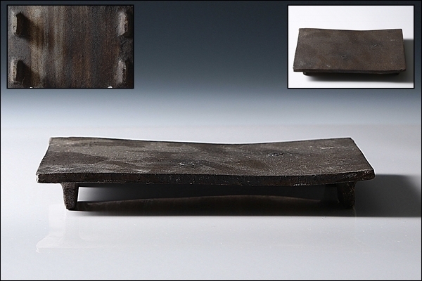 - SP1651 石原稔久 父 石原祥嗣 黒刷毛目 足付皿 板皿 角皿 工房 一石 検) ほぼ日 百草 ももぐさ