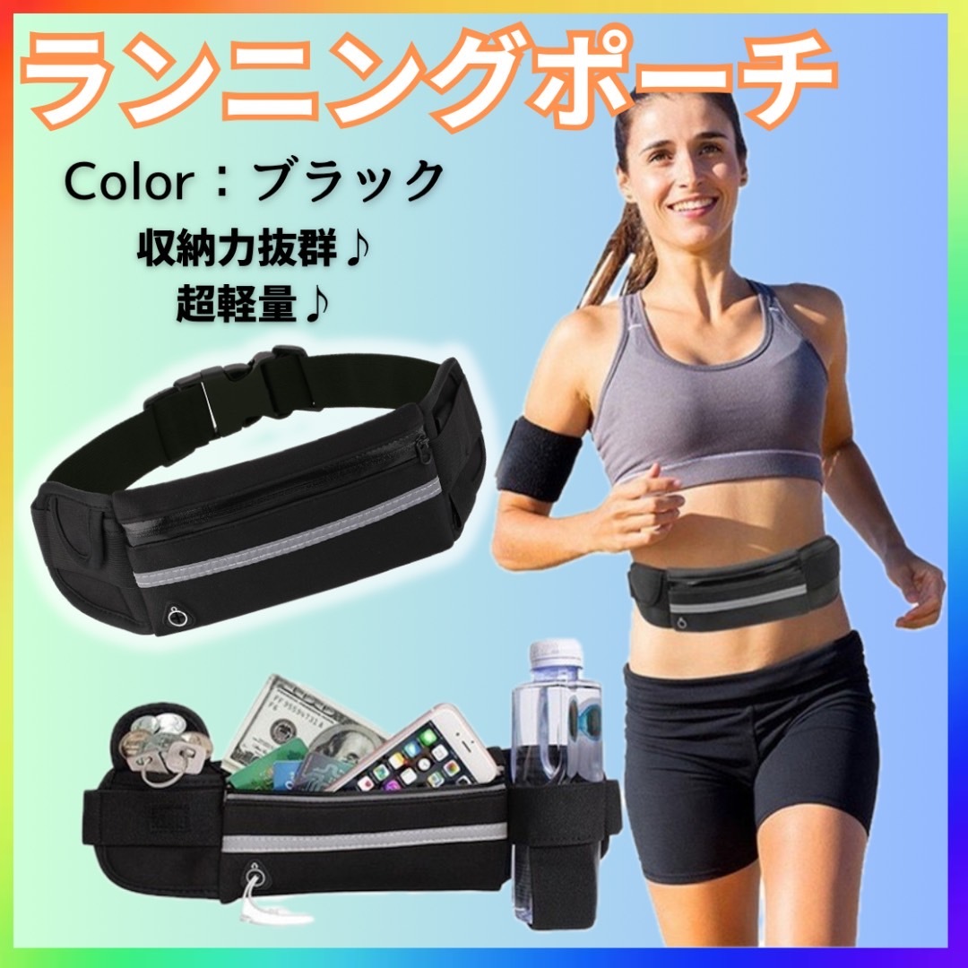 - ランニングポーチ ウエストポーチ スポーツ 多機能 バッグ アウトドア 黒 収納