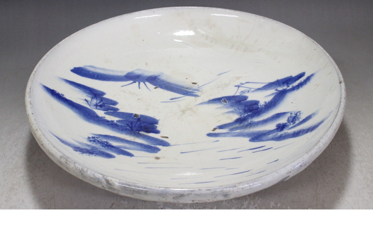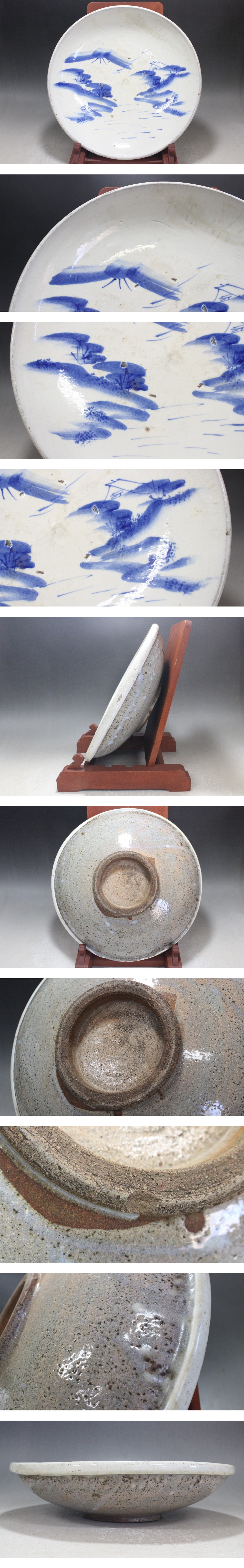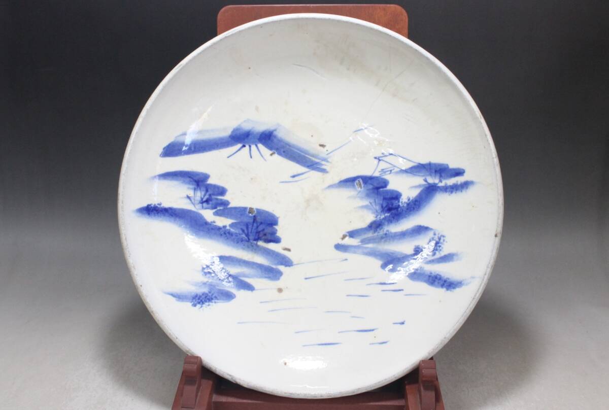 - 地方窯 染付 大鉢 (直径32cm) 尺皿 時代物 日本陶磁器 チ18