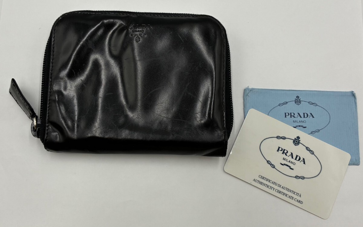 - 1円スタート PRADA プラダ 二つ折り 財布 レザー 型押しロゴ AA1020-1