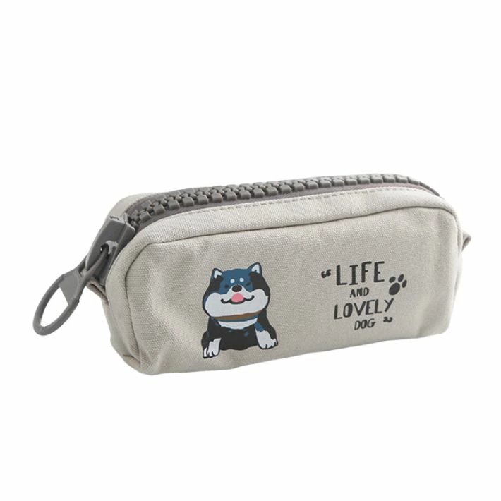 - グレー 柴犬 ペンケース 筆箱 犬 小物入れ 大容量 ポーチ モバイル メイク 収納 パステル 小学生 中学生 高校生 入学 ビッグジッパー