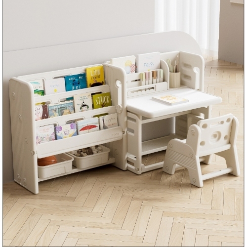 - 絵本棚+折りたたみキッズデスク チェア セット 多機能 絵本ラック おもちゃ収納 省スペース お絵描きデスク 棚付き キッズテーブル