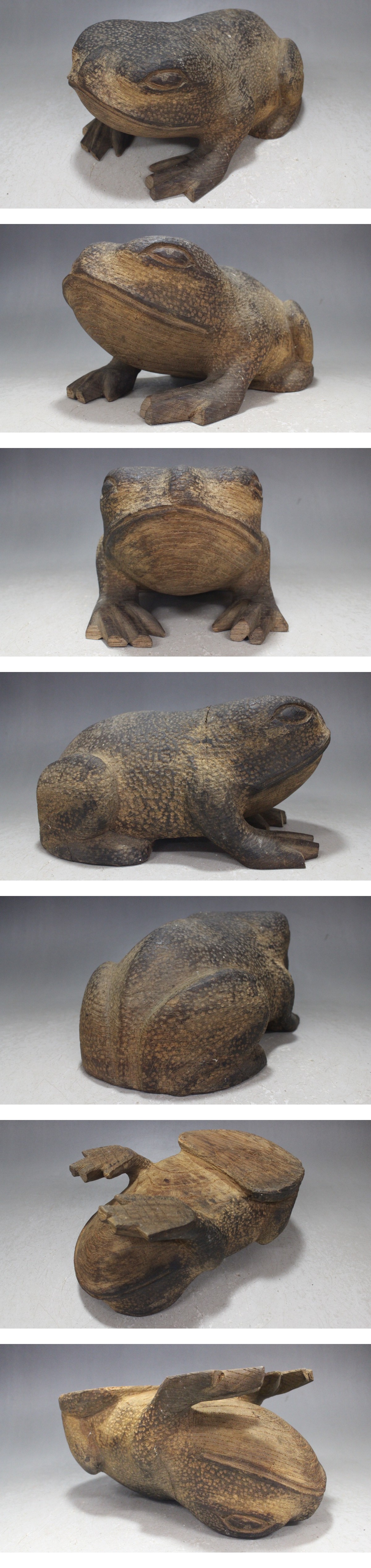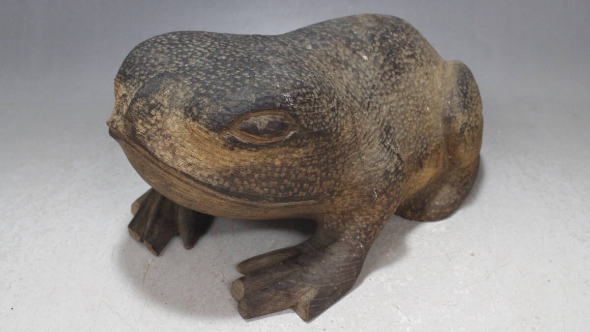- 木彫 蛙 (約975g) カエル 木像彫刻古玩 時代物 骨董古美術 チ53