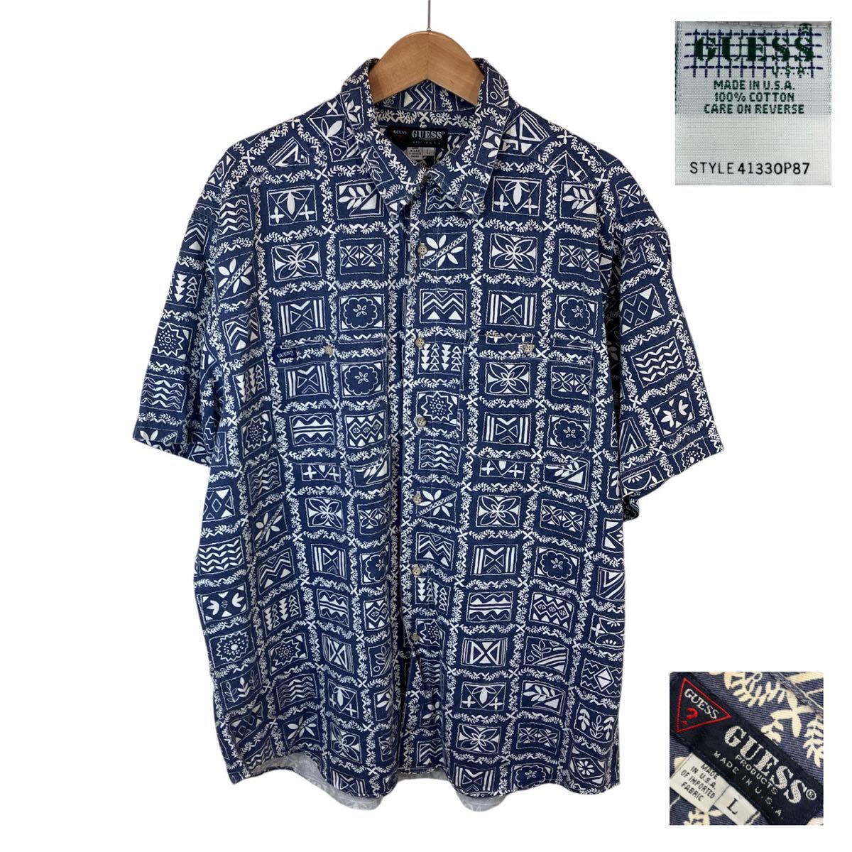 - 80-90s 80-90年代 GUESS ゲス men's メンズ ハワイアンシャツ アロハシャツ ラハイナ柄 半袖 シャツ ヴィンテージ ビンテージ L