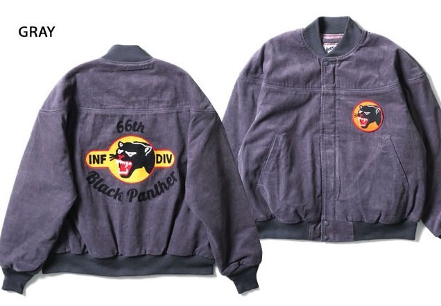 > コーデュロイダービージャケット◆HOUSTON グレー XXLサイズ 51568 ヒューストン ブラックパンサー ミリタリー 刺繍