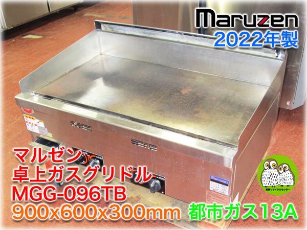 - 【2022年製】マルゼン 卓上ガスグリドル MGG-096TB 900x600x300mm 都市ガス13A 有効焼面積W900xD460mm 100~350℃【長野発】