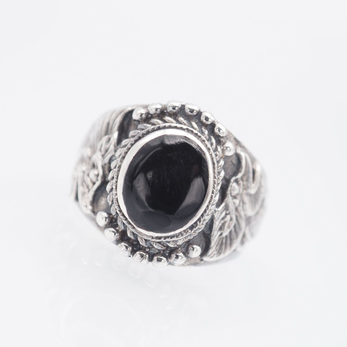 - G720 オニキス風 925刻印 リング インレイ デザイン シルバー 指輪 ヴィンテージ 13号
