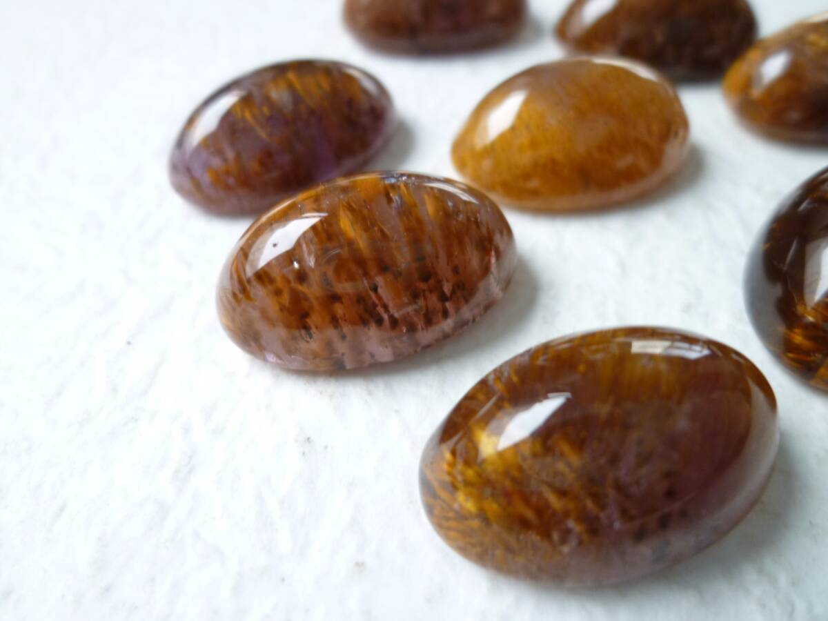 - 8個セット カコクセナイト インクォーツ 13×20mmオーバルカボション ルース 約120ct【匿名配送 送料込】
