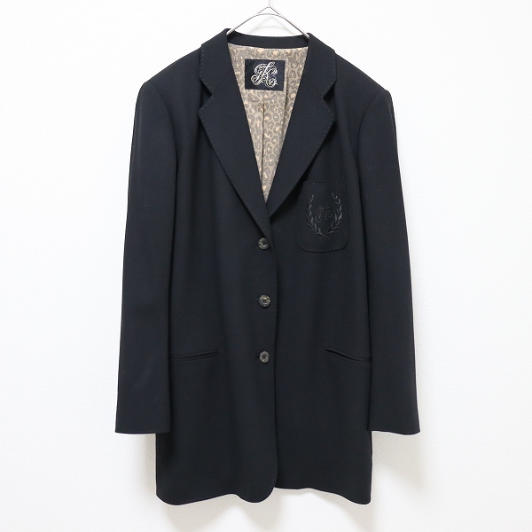 ◎商品名(タイトル):イタリヤ 伊太利屋 ジャケット テーラード ロゴ 刺繍 [968073n]◎ブランド名:イタリヤ 伊太利屋◎アイテム名:ジャケット テーラード◎サイズ:11◎性別:レディース◎カラー:黒系◎素材:画像をご参照ください◎実寸サイズ:肩幅約 44cm・袖丈約 59cm・着丈約 75cm・胸囲約 55cm×2◎商品コメント:★当店の商品はすべてリユースアイテムとなります。特質上、些細なダメージは記載しておりませんので着用に問題のない使用感、着古した雰囲気などはご了承くださいませ。◎コンディションレベル:やや傷や汚れあり◎コンディション備考:右袖先に凝視程度の薄い汚れがございます(画像5参照)また、前身頃のボタンにゆるみがございます。キーワード/アクイール/古着/used/ビンテージ/ヴィンテージ/レトロ/昭和/テーラードジャケット
