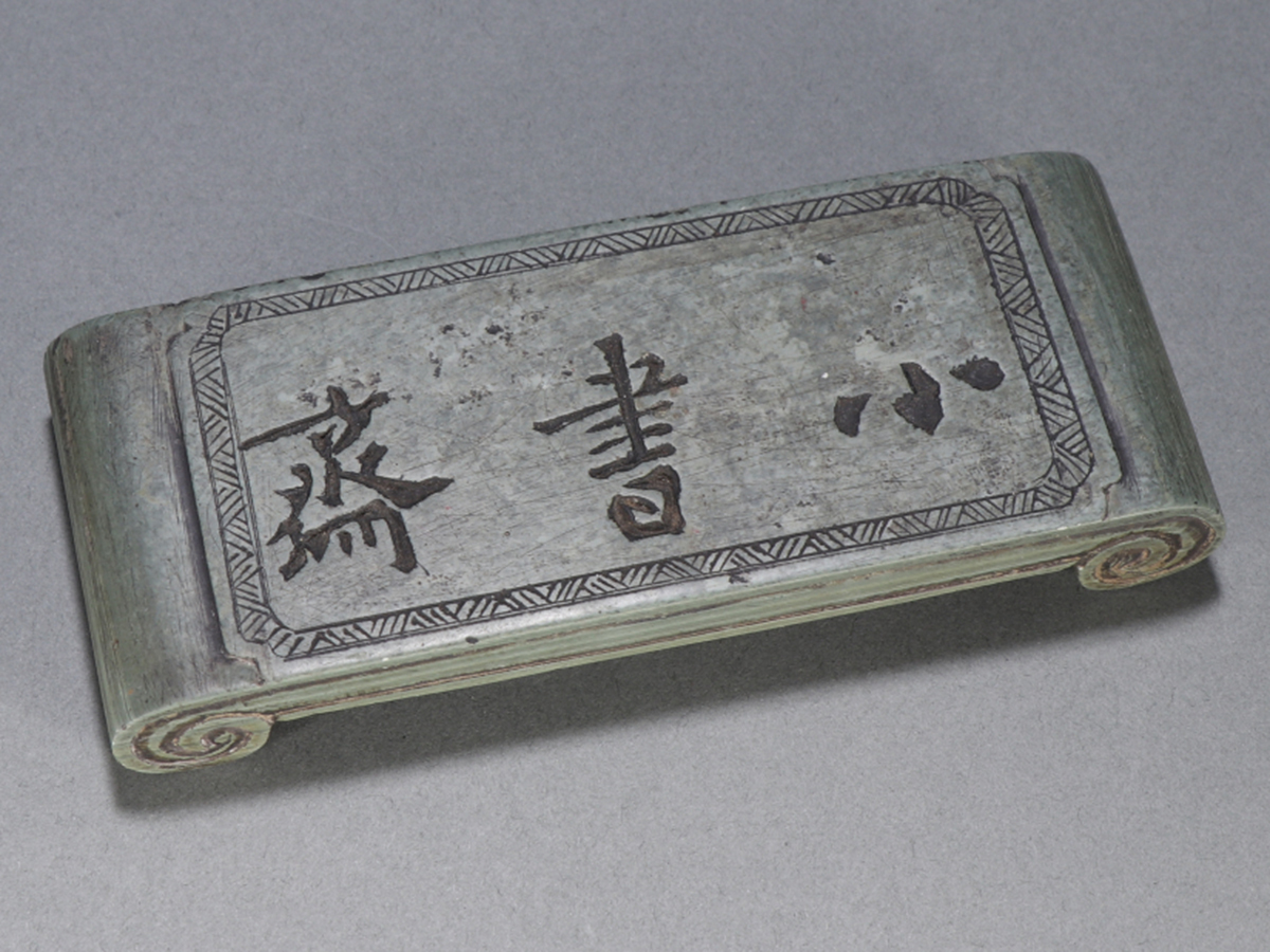 - ▽鴻▽清朝時代 端石彫 墨床 案卓 時代物 中国古美術 骨董品