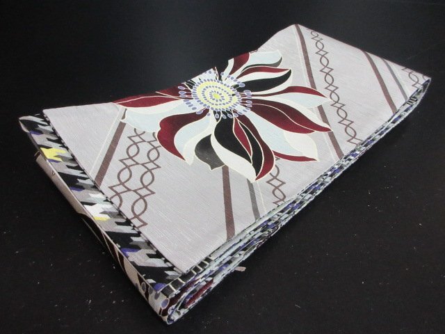 - 1円 良品 半幅帯 絹 木綿 和装 和服 浴衣帯 リバーシブル 草花 花柄 幾何学 お洒落 和装小物 長さ418cm【夢職】★