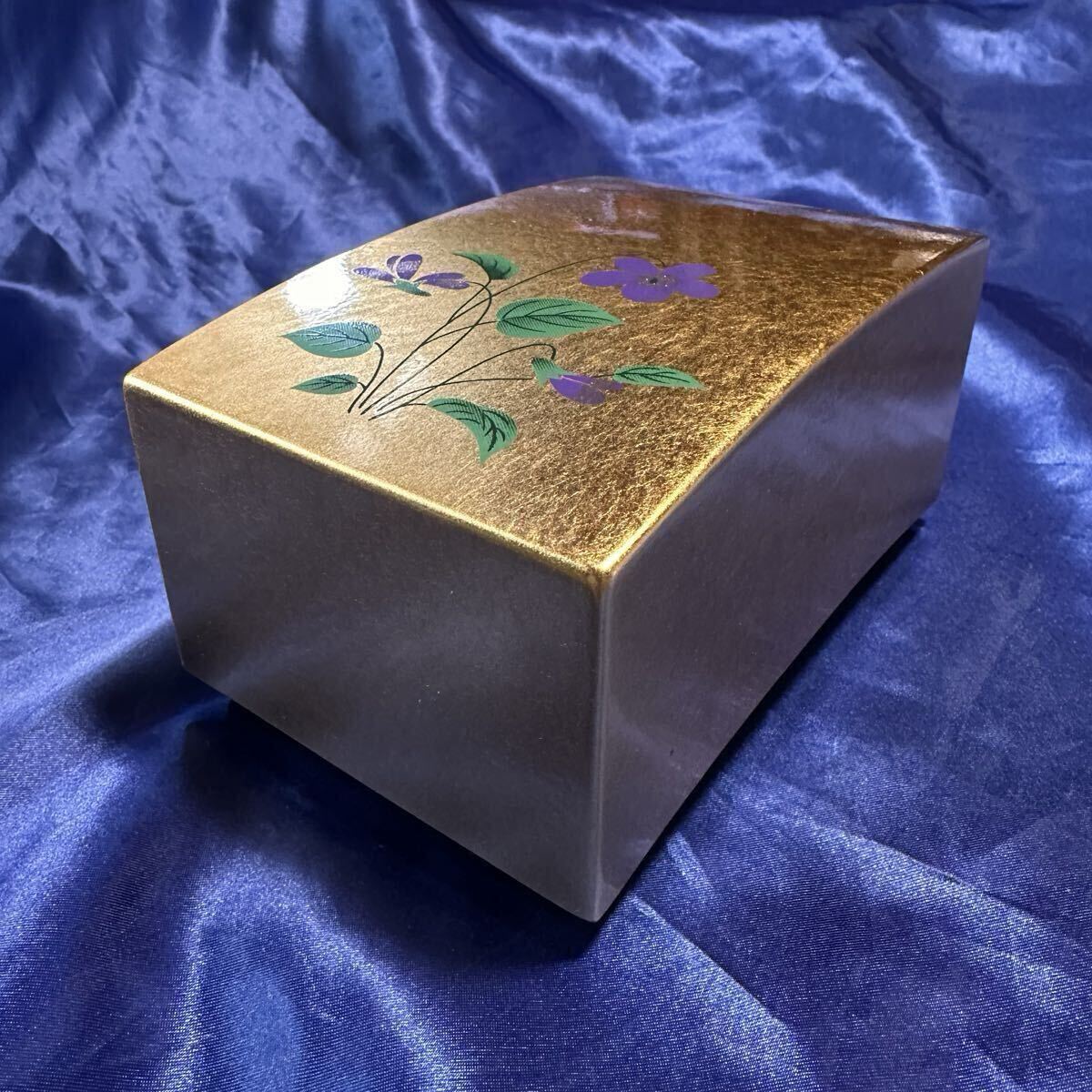 - 【小物入・漆器・新品】浮橋小物入(中) すみれ洋金箔 未使用品 金箔工芸品 保存箱 小物入れ 金箔 空箱 物入れ 会津山田漆器会館 会津塗