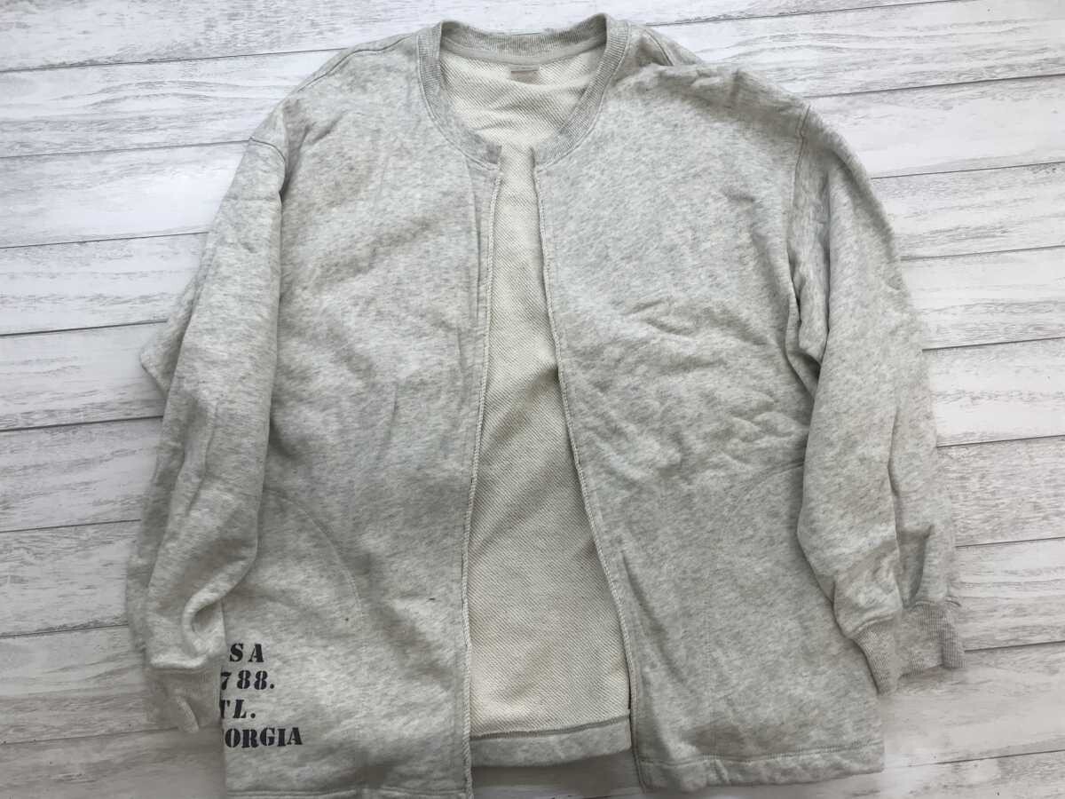 > ニコアンド Niko and... レトロ ミリタリー ステンシル レタード ボタンレス スウェット カーディガン レディース コットン100% L グレー
