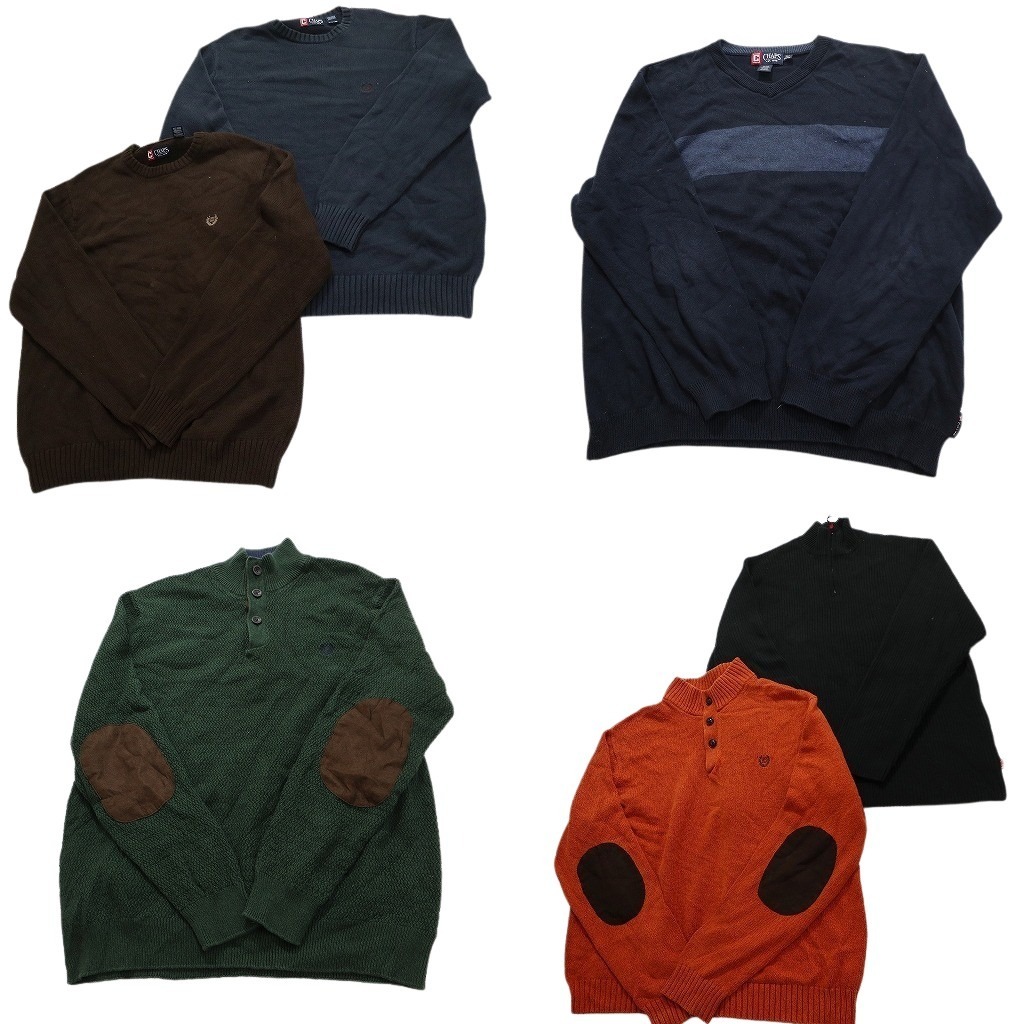 > 古着卸 まとめ売り チャップス CHAPS セーター 6枚セット (メンズ XL ) エルボーパッチ ハーフボタン ライン Vネック NC3205 1円スタート