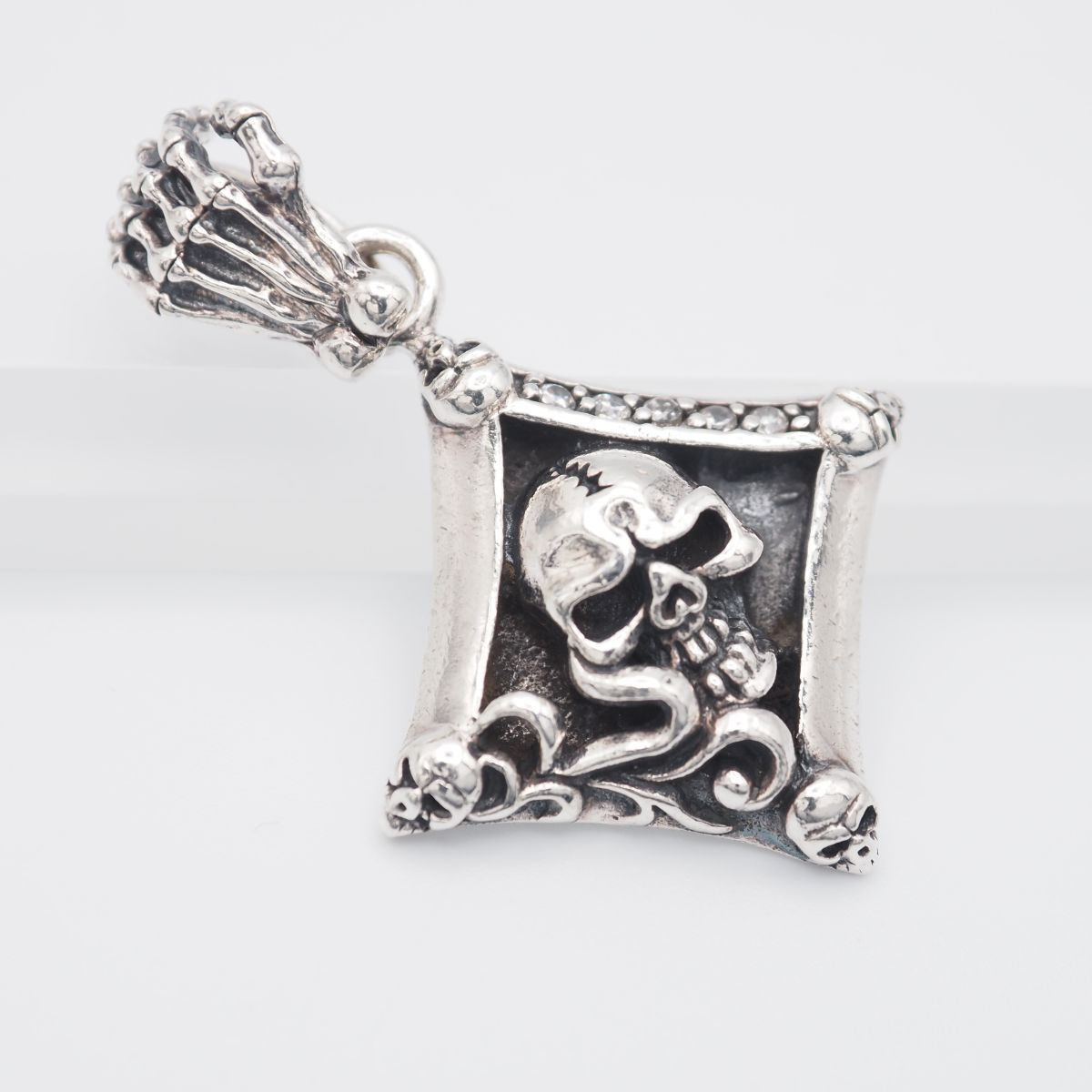 - G882 ダイヤモンド風 ペンダント トップ ドクロ スカル 骨 デザイン シルバー チャーム ヘッド ヴィンテージ