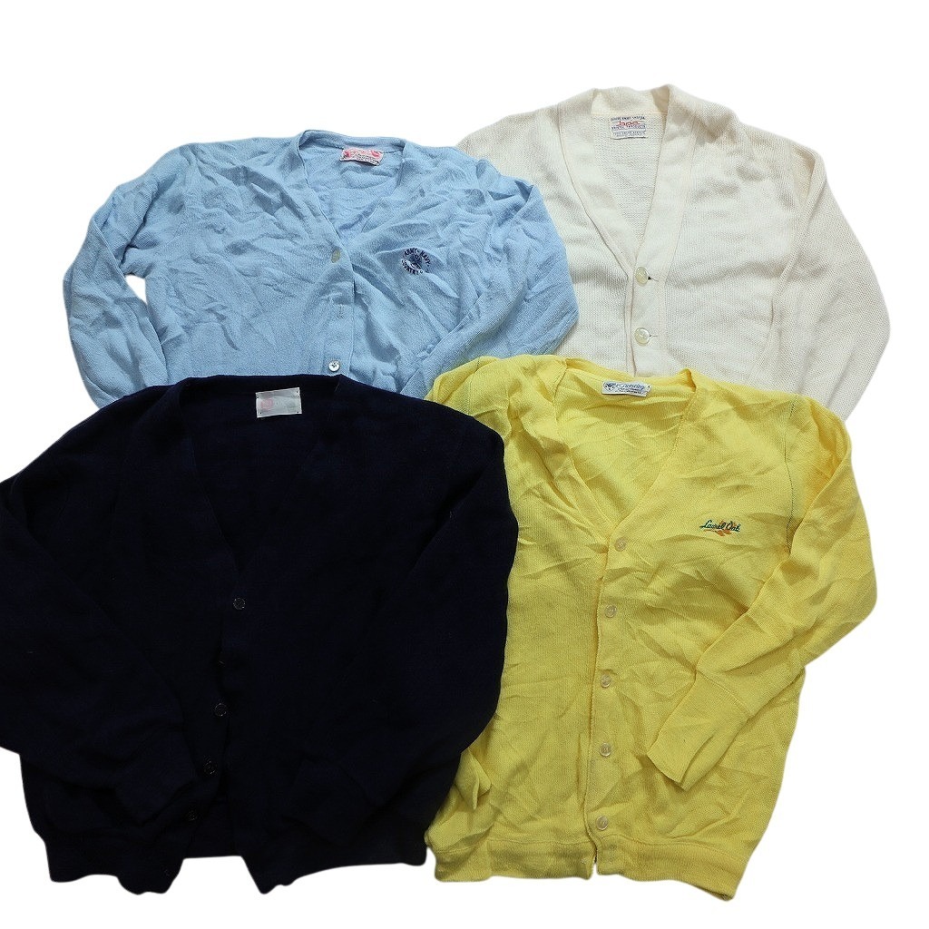 - 【訳あり】 古着卸 まとめ売り アクリル カーディガン セーター 21枚セット (メンズ ) レタードニット 70's ワンポイント 中古 古着 WA3620