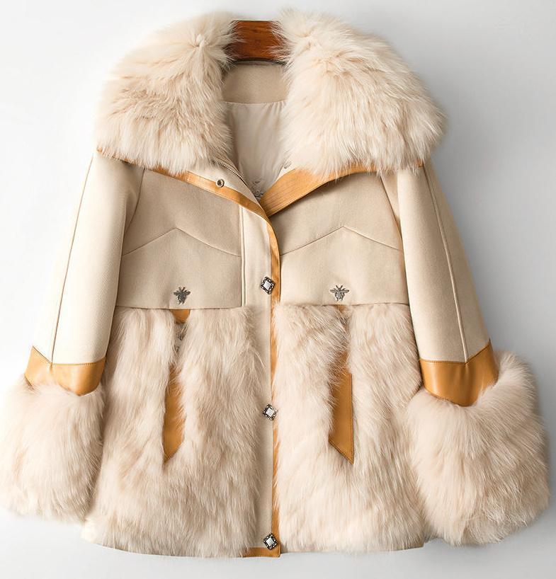 - 新品★最高級フォックスファー付き★ウォッシュレザー生地のダウンコート毛皮ファー