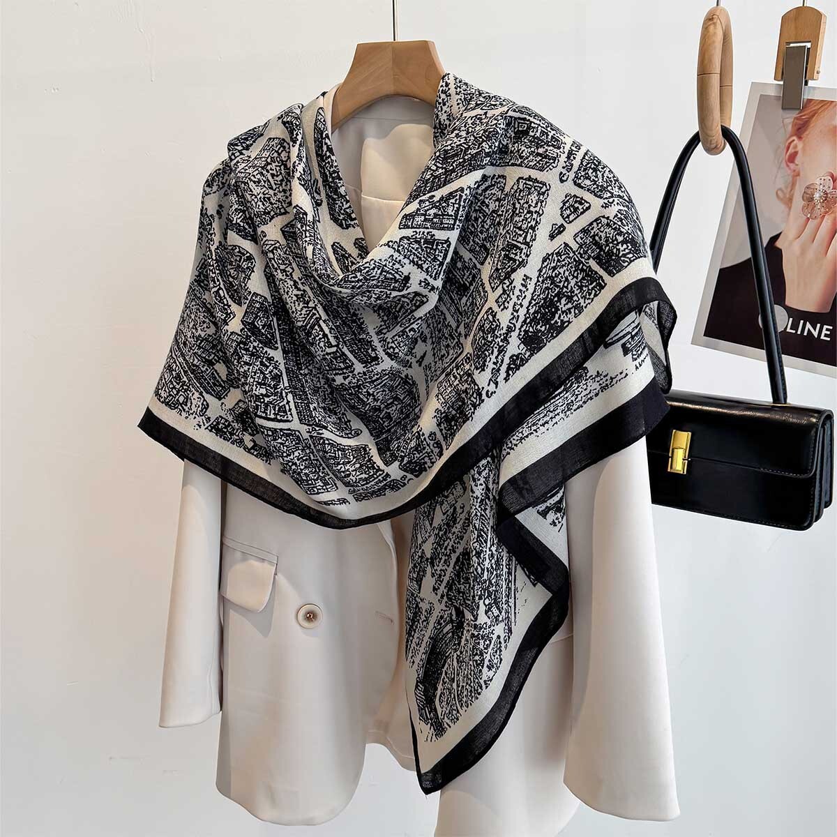 - 【J-13】新品 レディース ショール紫外線 マフラー大判 春 夏 秋 冬 用正方形 130×130cm冷房対策ストール ブラック