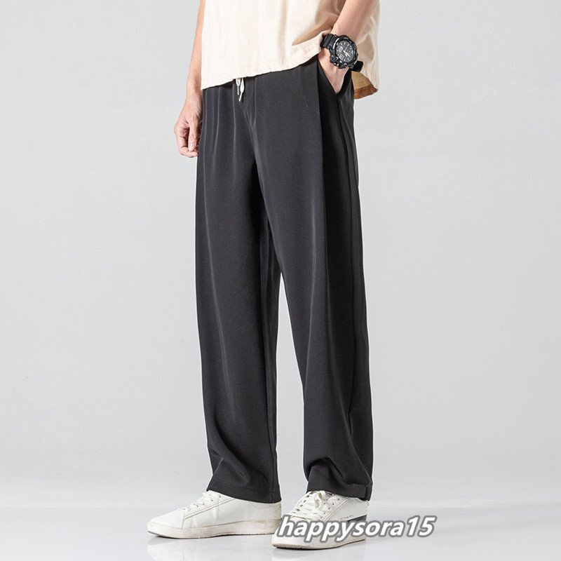 - チノパン メンズ 接触冷感 美脚 スポーツ ひんやりパンツ 九分丈 ゆったり 薄手 涼しい カジュアル 春 夏 秋 ブラック 4XL