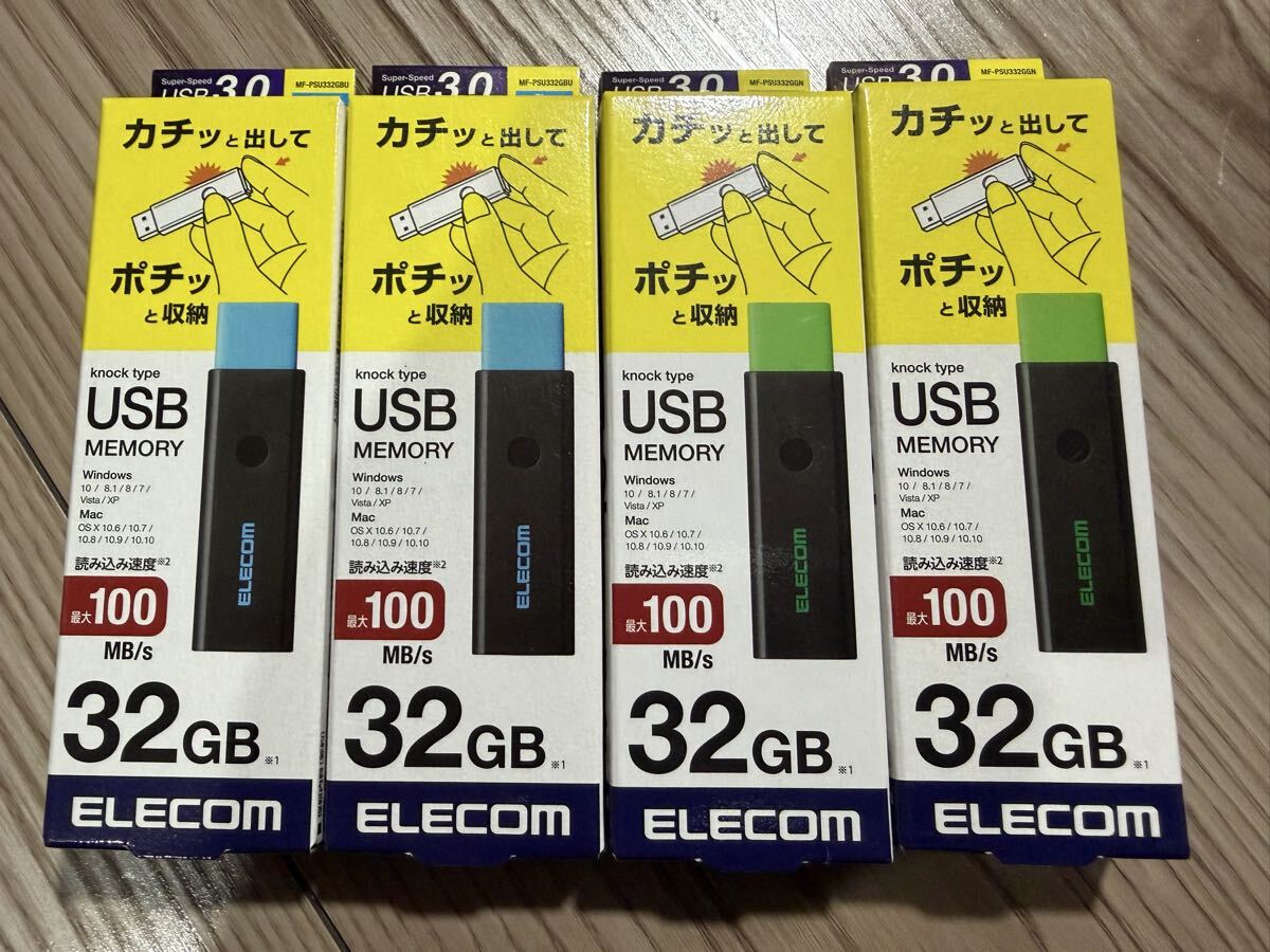- 送料無料新品未開封未使用 32GB USB3.0メモリ4本セット ELECOM ブルー グリーン
