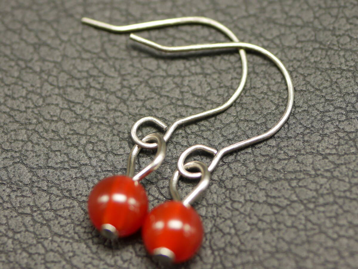 - 【チタンフック】4mm赤瑪瑙の1粒ピアス 334
