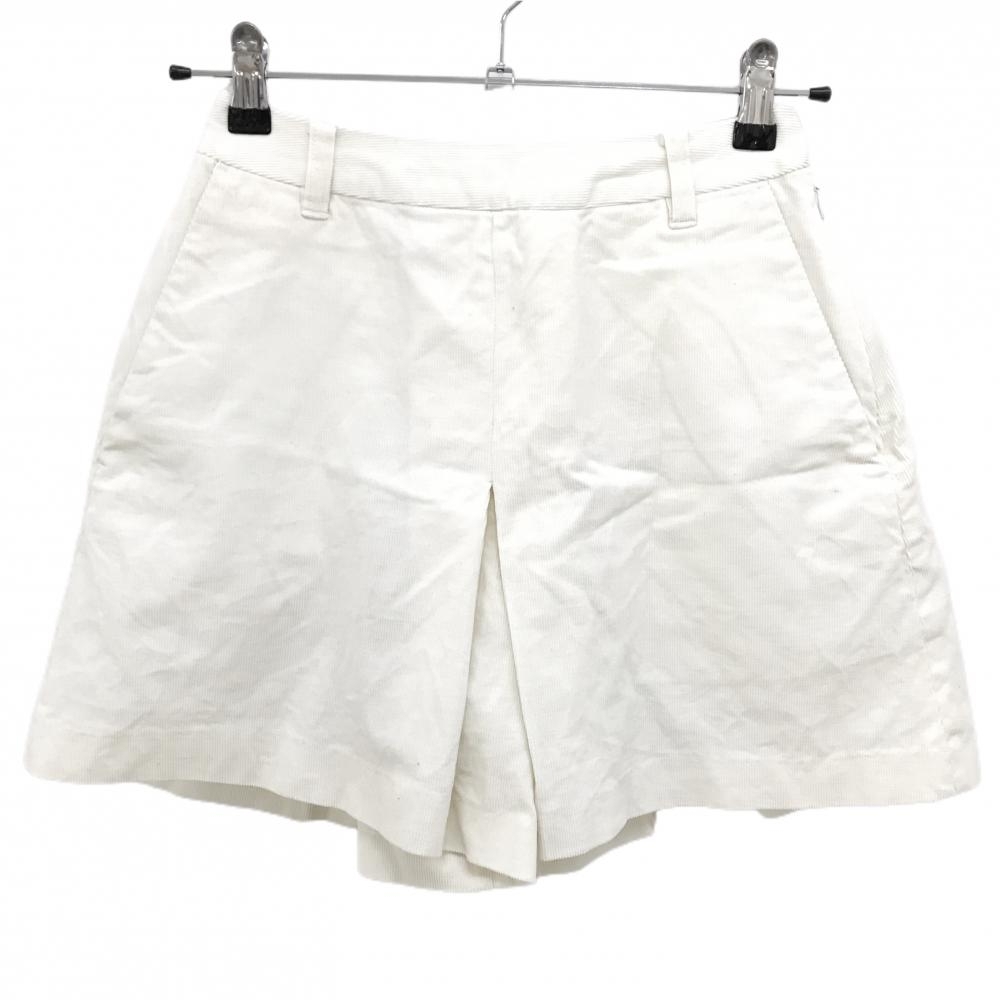> 【美品】ビームスゴルフ キュロットスカート 白 コーデュロイ 後ロゴ刺しゅう レディース S ゴルフウェア BEAMS GOLF