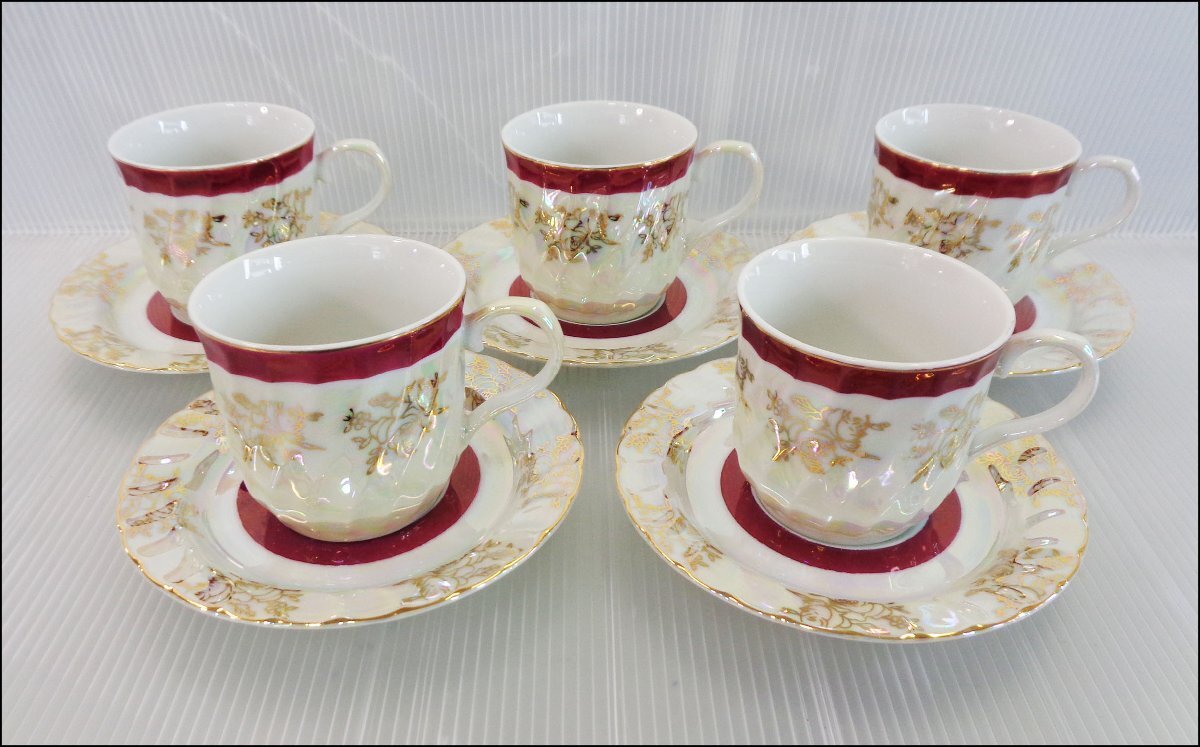 - Bana8◆KAKAMU カップ&ソーサ― 5客セット モダン レトロ 花 光沢あり 茶器