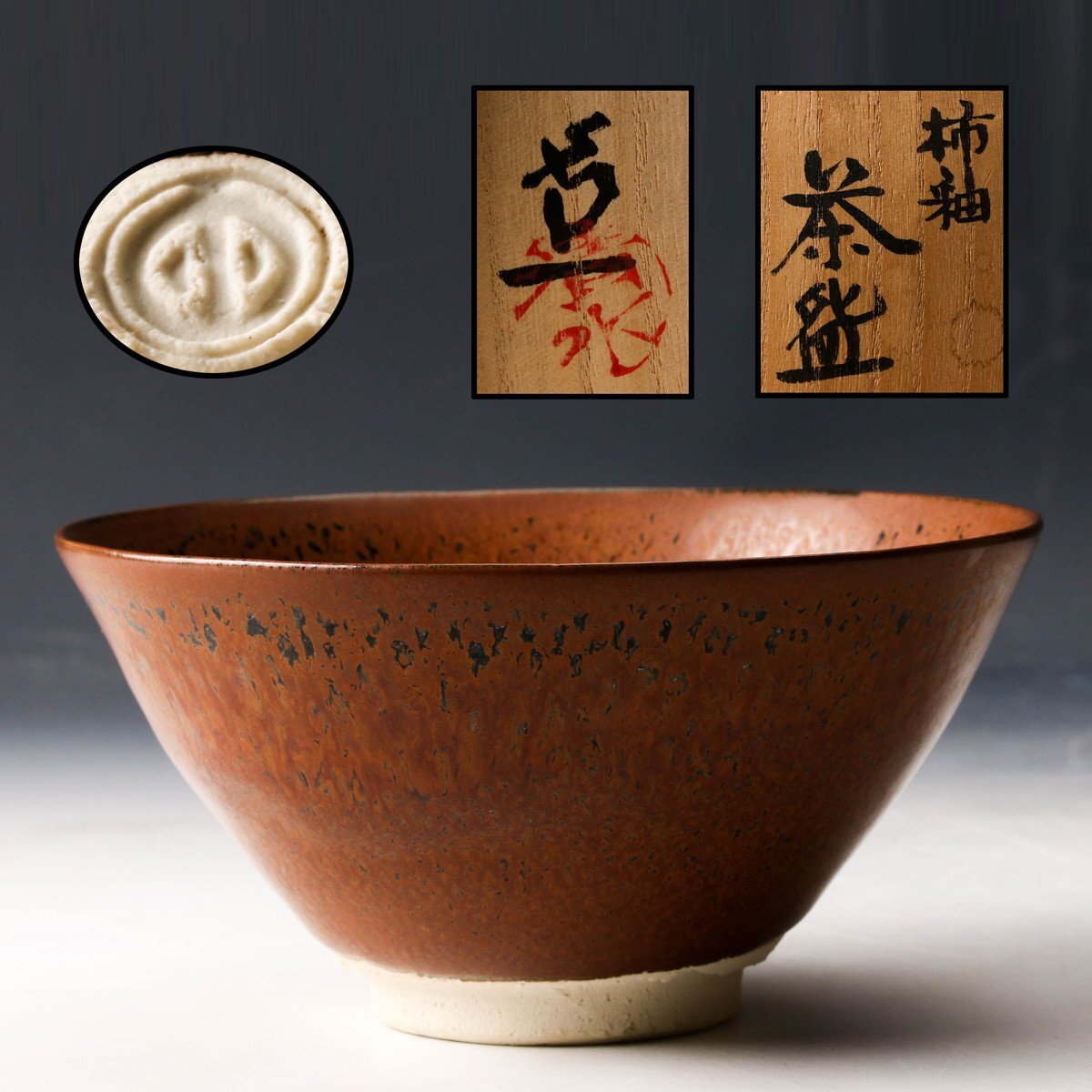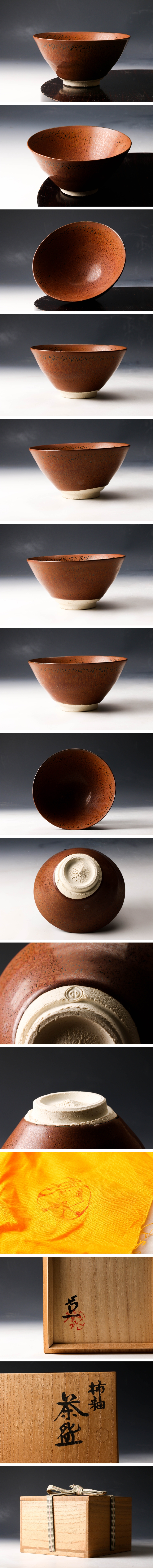 【佳香】人間国宝 清水卯一 柿釉茶碗 共箱 共布 茶道具 本物保証
