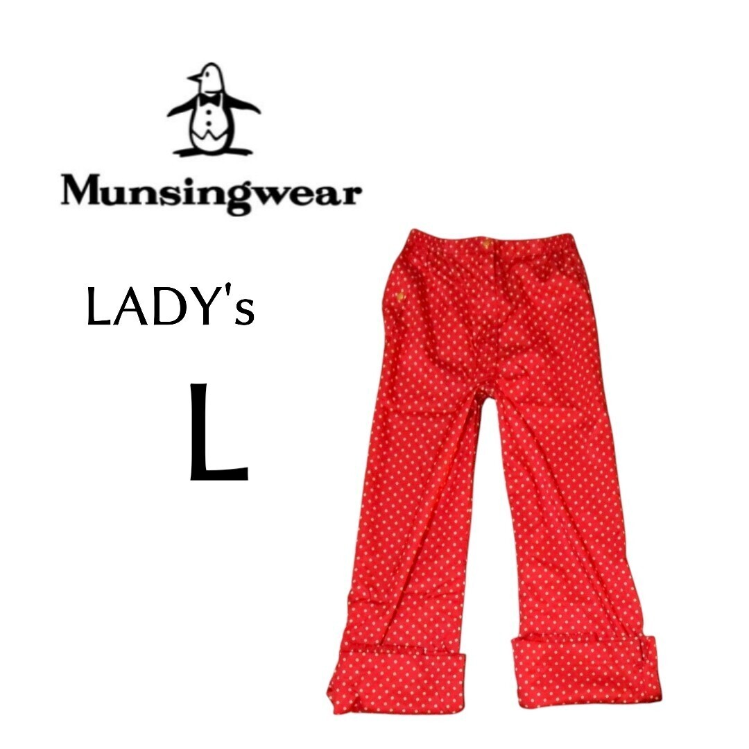 - レディースLサイズ MUNSING WEAR ドット柄ウーブンパンツ 赤色
