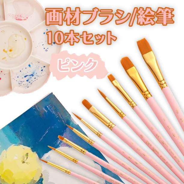 - 絵筆10本セットピンク 画材ブラシ アクリル筆 ペイントブラシ 油絵 水彩 平筆