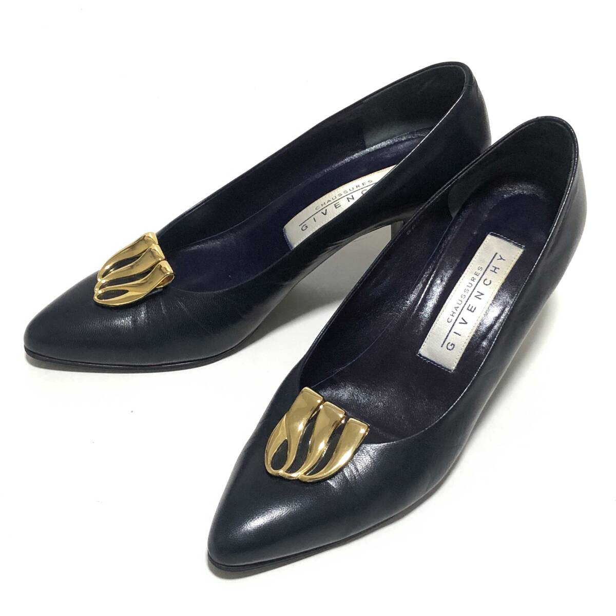 - 【良品~美品】GIVENCHY ジバンシィ レザー パンプス 36 ネイビー ゴールド金具 23cm