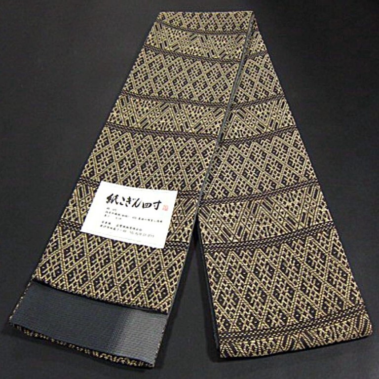 - 新品 米沢織 絹 和紙 宝来屋 紙こぎん四寸帯 高級半幅帯 幅広 長尺 近賢織物
