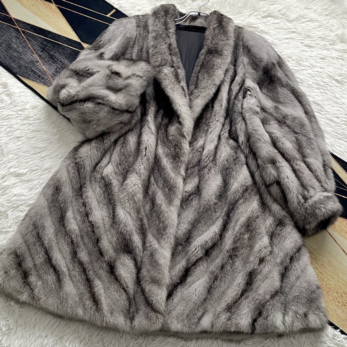 > 裾周り167/激レアデザイン ROYAL/ロイヤル サガミンク/SAGA 柄/クロスミンク/Aライン◎ ファーコート リアルファー 毛皮 XL 貂 アウター 貂