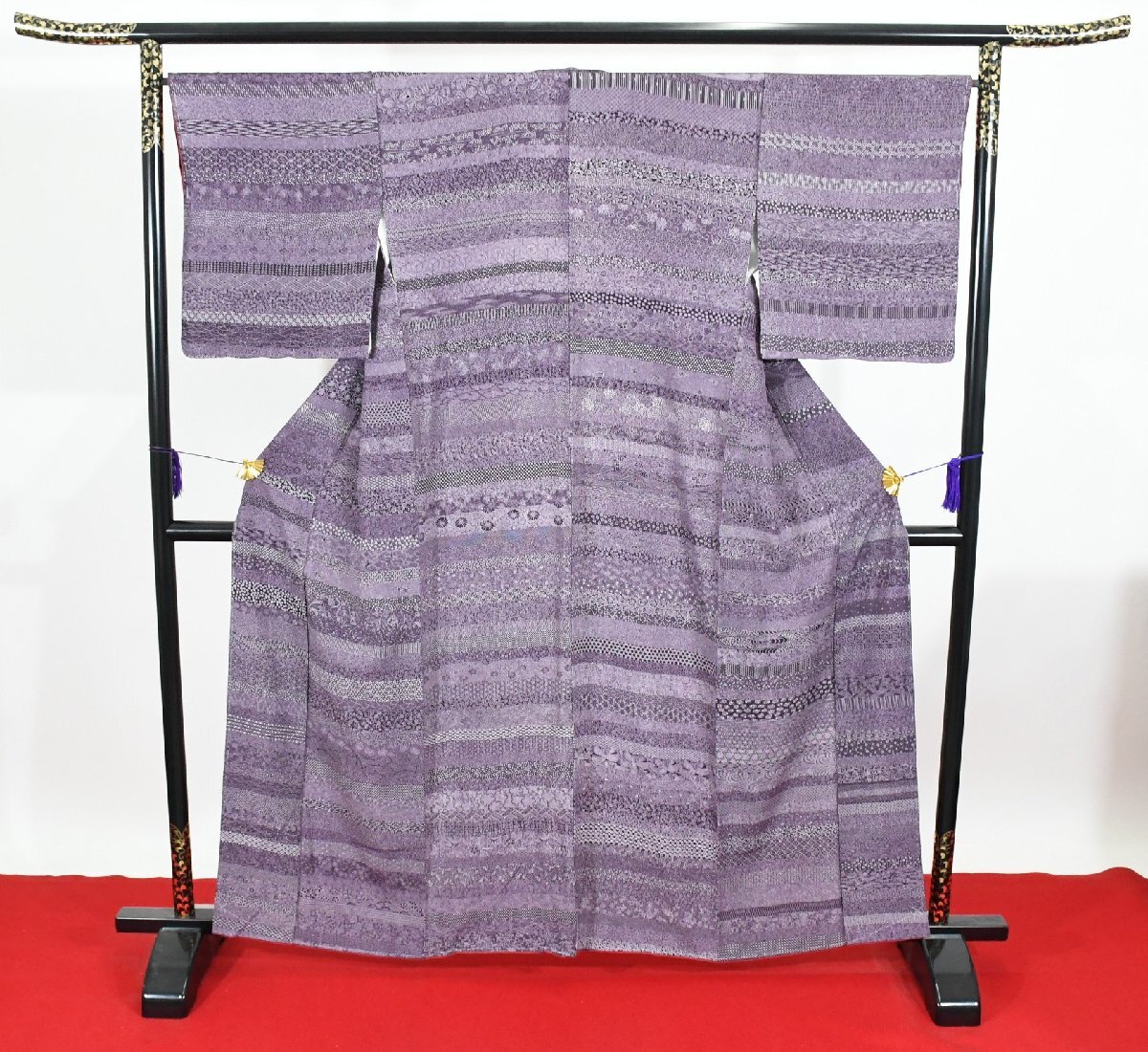 > 小紋 着物 袷 紫紺 縞江戸小紋 身丈153cm 裄丈66cm ★ kb-7325 桜庭呉服店