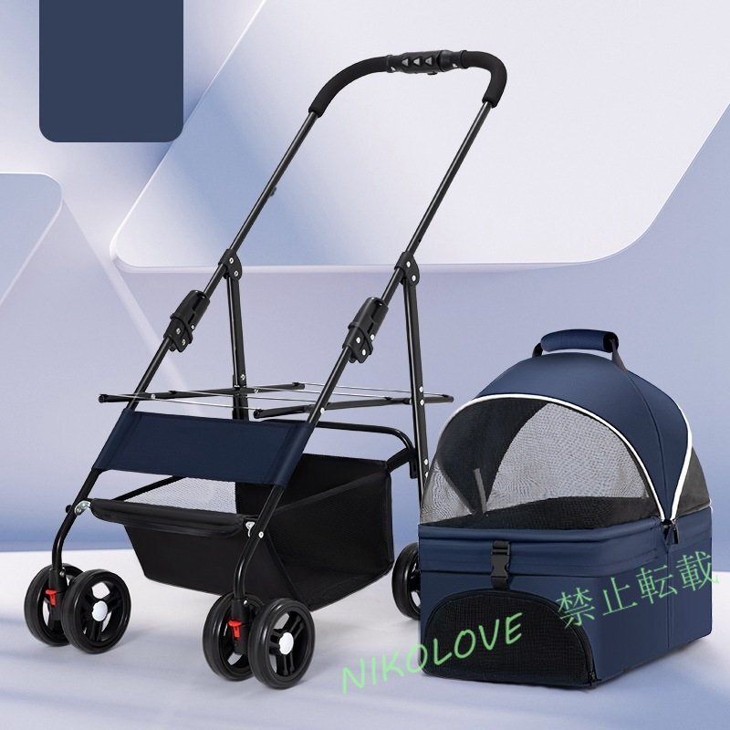 > ☆新品お色選択可 ペットカート 折りたたみ 軽量 ペット 4輪 ホルダー収納耐荷重15kg中型犬小型犬介護用散歩用犬猫カートシニア犬ネイビー