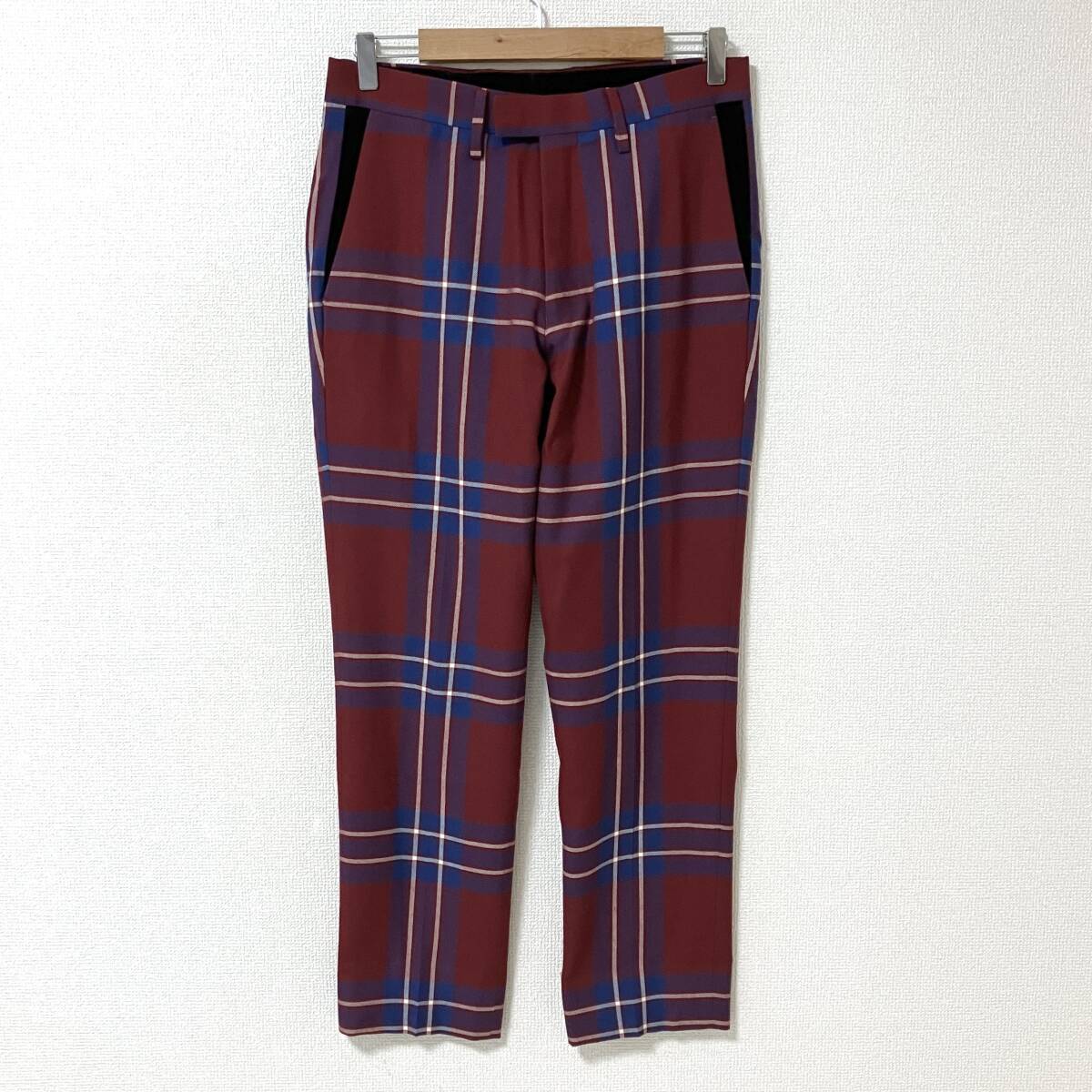 - vivienne westwood MAN ベルベット切替 チェック ウール スラックス 44サイズ ヴィヴィアンウエストウッドマン パンツ archive 5090215