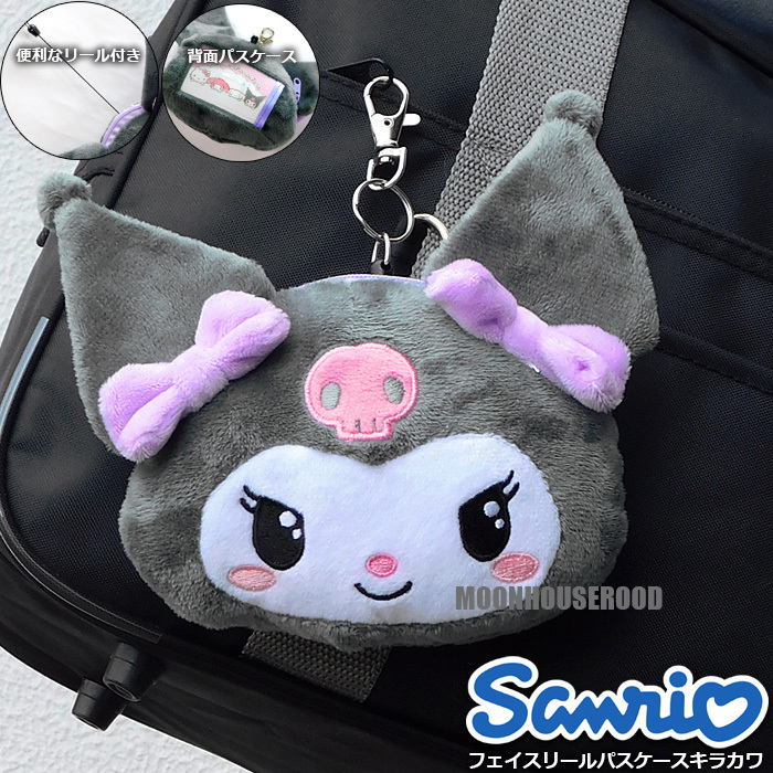 - 送料無料 クロミ ぬいぐるみ フェイス型 パスケース リール付き カードケース 小銭入れ コインケース 定期入れ クロミちゃん サンリオ■