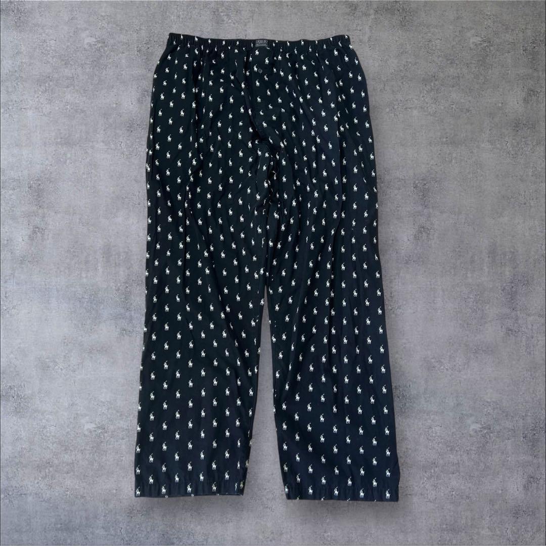 - 【人気】ポロラルフローレン パジャマパンツ イージーパンツ ブラック ロゴ 総柄