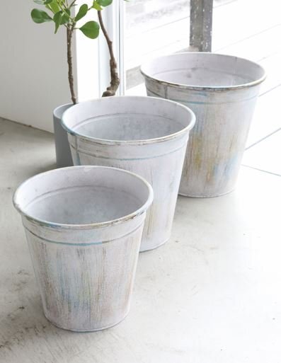 - 輸入雑貨 フリカ ホワイトポット 3点セット フラワーポット プランター コベントガーデン CoventGarden アイアン ブリキ BW-01 送料無料