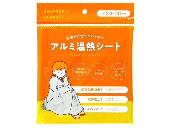 - アルミ温熱シート 災害時の簡易防寒具に! サイズ:約213cm×137cm