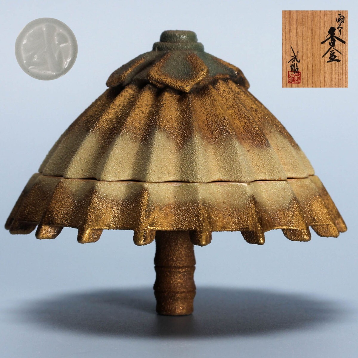 - 小川武雄 秀逸作 雨宿り香合 共箱 共布 栞 茶道具 本物保証