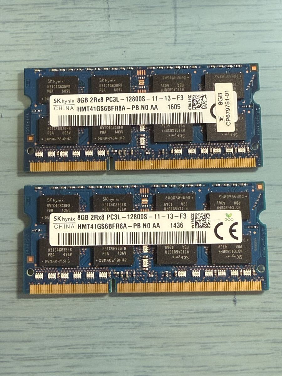 - 【動作品】SK hynix 8GB DDR3L-1600 (PC3L-12800S) 2枚組 (16GB) ノートPC用メモリ 管理353