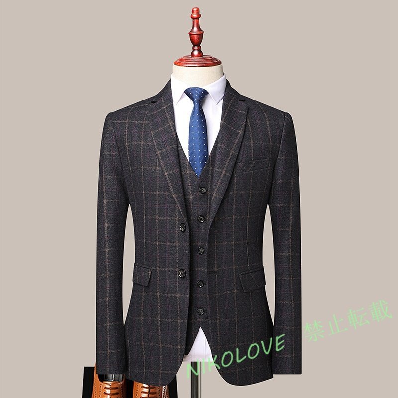 > ☆新品スーツ メンズ スリーピース ビジネススーツ 3ピーススーツ フォーマルスーツ カジュアルスーツ 洗える 通勤 結婚式 M~4XL グレー