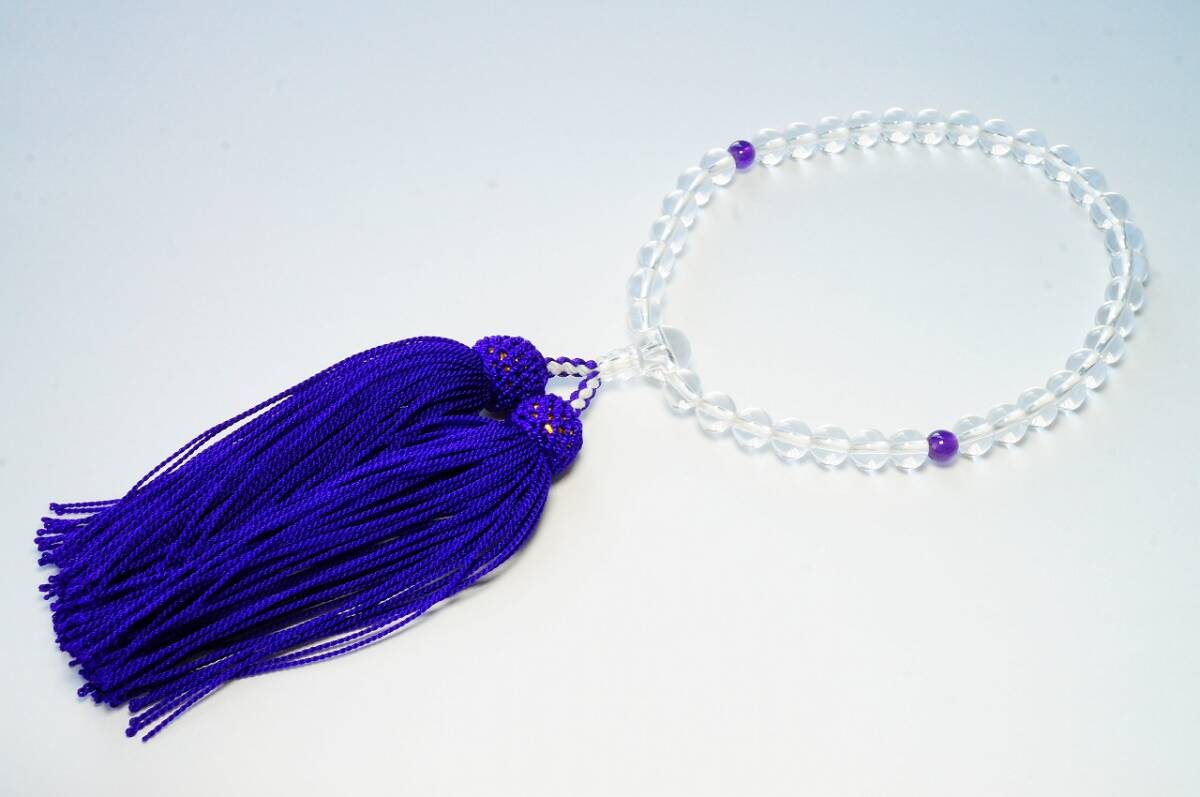 - 早い者勝ち1点のみ【高透明度天然白水晶7.0mm&紫水晶玉5.8mm(アメジスト)略式念珠 数珠】 人絹房付 仏具