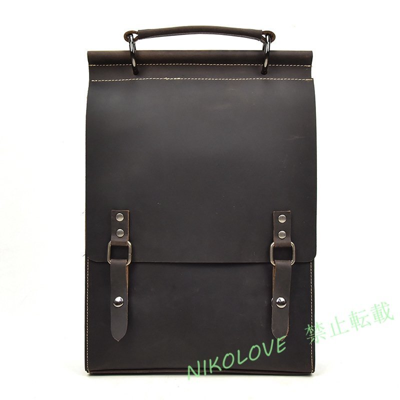 - ☆新品リュックサック厚手牛革 リュンズ 本革 バックパック キャリンバッグ 通学通勤 軽量 オイルレザービンテージ ブラウン